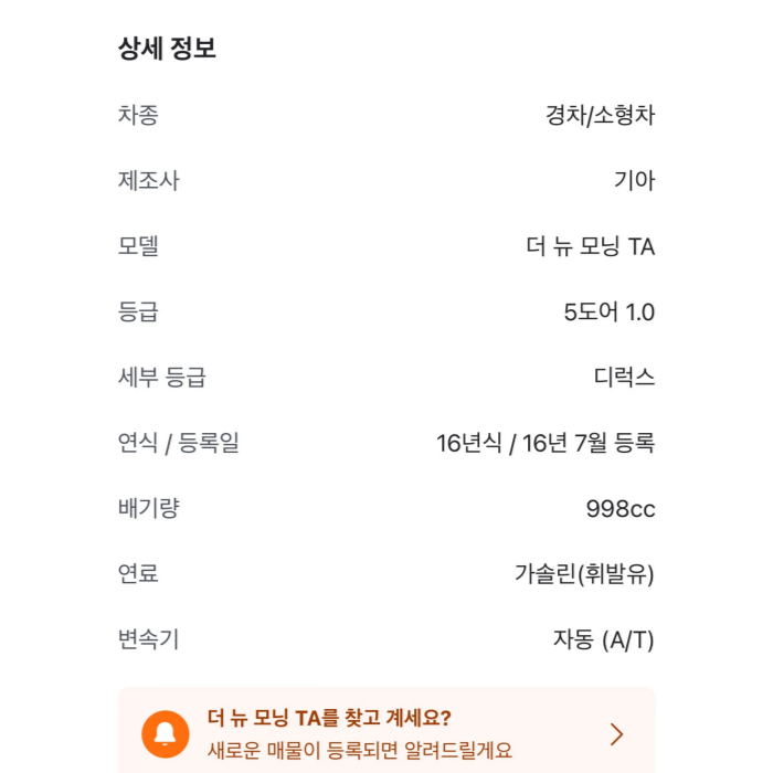 이 부분을 이용하시면 내가 궁금한 차종을 등록 될 때마다 알림 받아볼 수 있어 비교하기 좋았습니다.