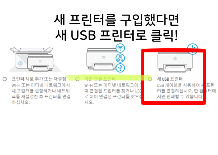 - 새 USB : 프린터를 새로 구입했을 때 선택